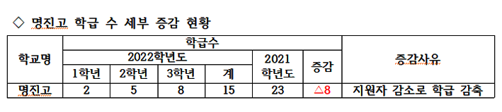 학벌없는사회를 위한 시민모임은 28일 "학생과 학부모들이 명진고 진학을 꺼려 23학급에서 15학급으로 8학급이나 감축됐다"면서 "이로 인해 인근 학교들이 과밀해지면서 학습환경도 열악해지고 있다"고 지적했다.
